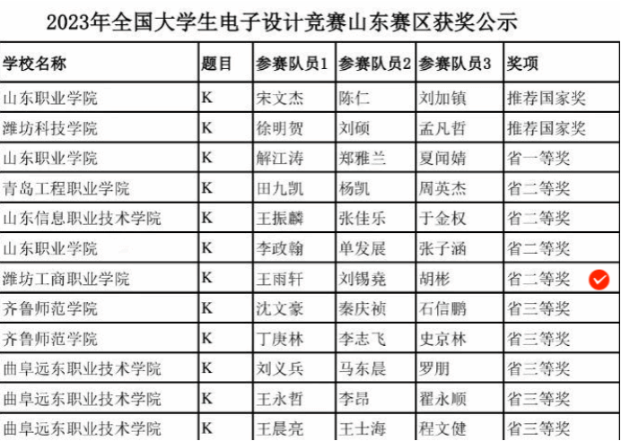 我校非常重视学生科技创新能力的培养,今年上半年,学校积极组织动员师生参加该赛项,智能信息学院参赛团队在王海鹏、李金娟、郭永芳三位教师的指导下,利用周末、暑假时间积极备赛,在比赛中参赛学生高度专注、锲而不舍、一丝不苟,体现出了我校学生过硬的专业素质。最终在全国大学生电子设计竞赛山东赛区比赛中取得历史突破。