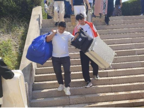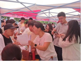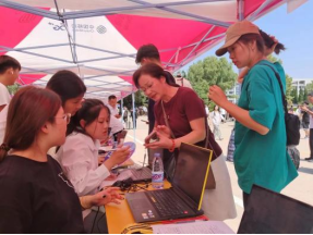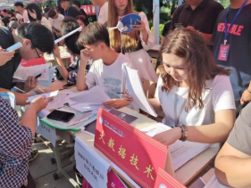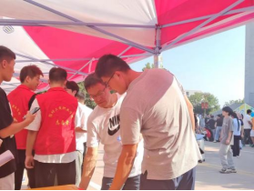 负责迎接新生的志愿者们是院系大二的学生,大家以优质的服务去迎接新生,耐心地与家长沟通,领着23级新生穿梭于交款缴费、报名登记等新生办理入学手续必经的各个地点。