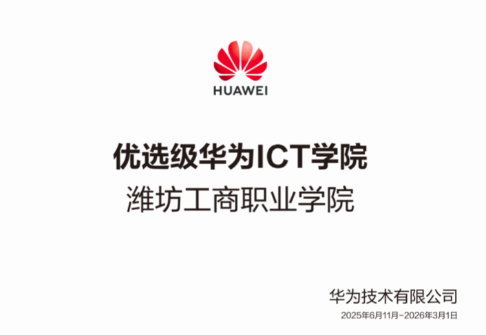 近日,潍坊工商职业学院华为ICT学院在人才培养、课程建设、师资建设及学生职业认证等方面成效显著,通过华为技术有限公司严格评审,正式升级为“优选级华为ICT学院”。这一成果标志着学院产教融合与校企协同育人工作迈上新台阶,并将获得华为在课程资源、师资培训&认证支持及华为认证考试优惠等方面更高级别的权益,为华为ICT学院共建专业发展注入强劲动力。